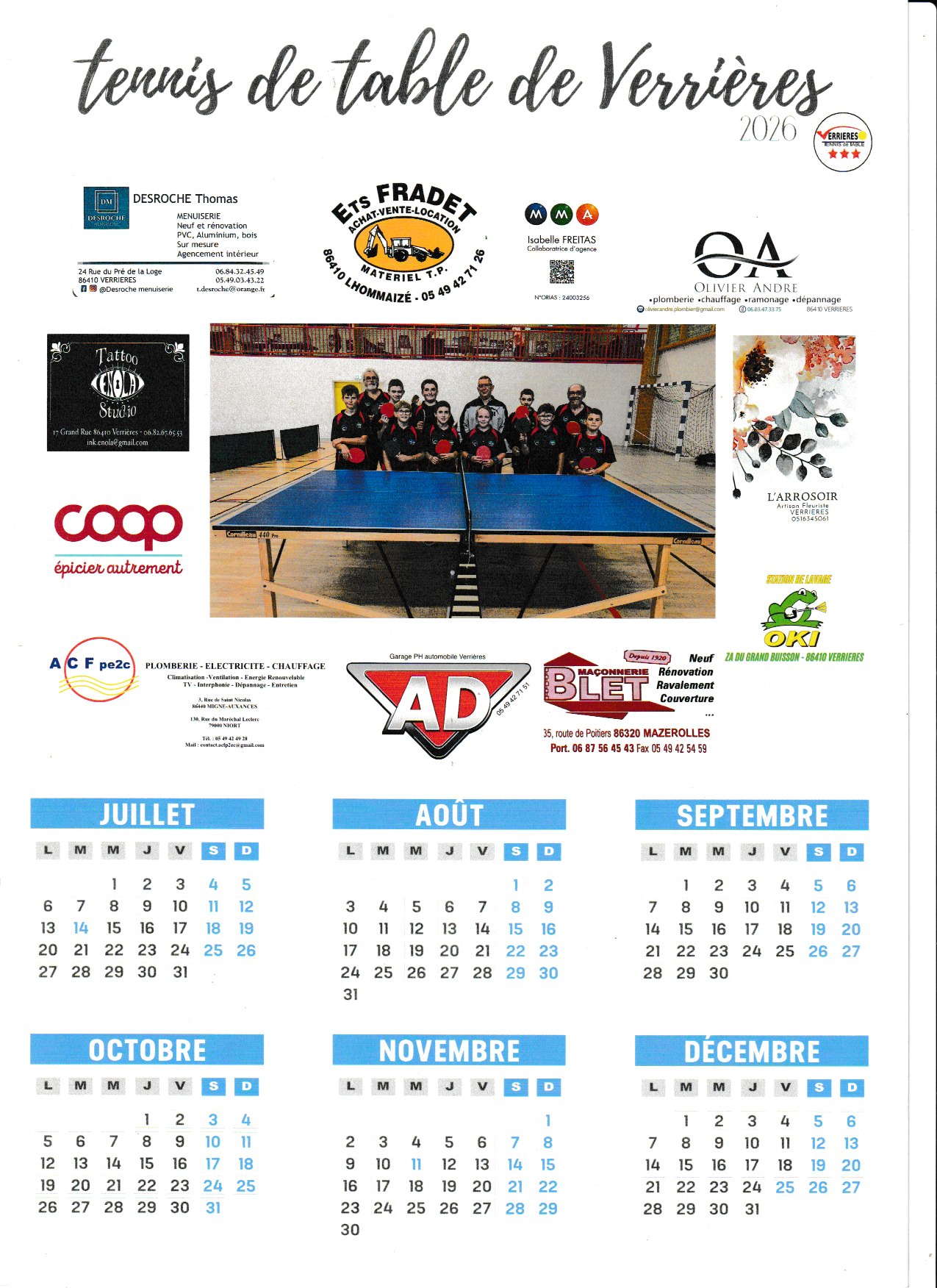 Voici le calendrier de la saison 2025-2026 (compétitions, équipes et occupation de la salle). Ce calendrier sera mis à jour tout au long de la saison, vous pouvez le télécharger ci-dessous au format PDF.